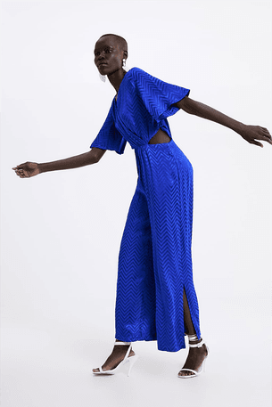 Combi-pantalon bleue en jacquard à ouvertures de Zara