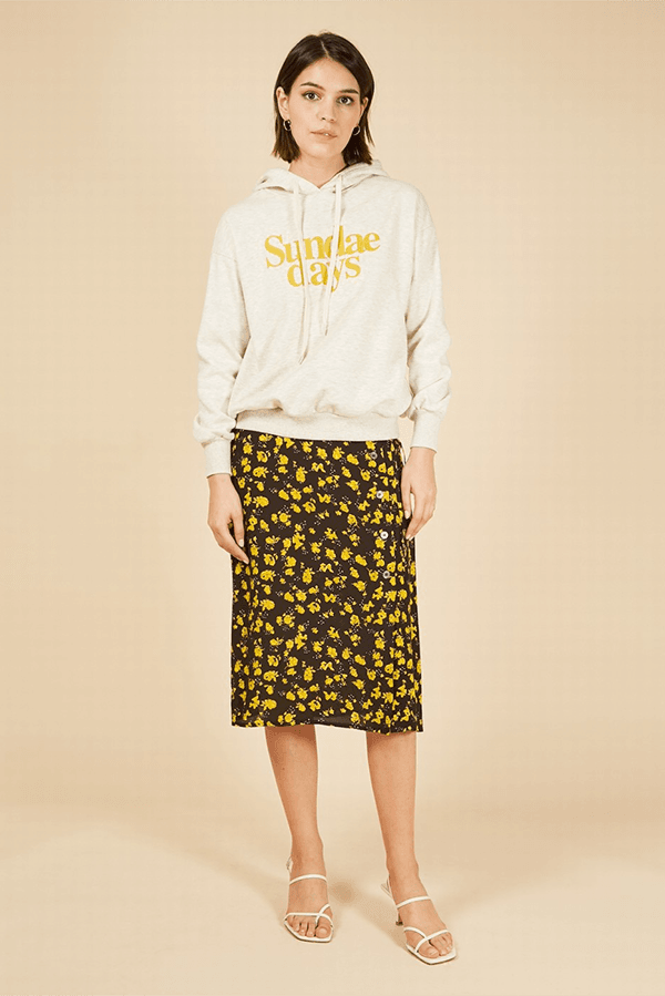 Jupe longue à boutons et fleurs jaunes de FRNCH