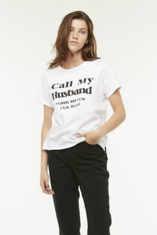 T-shirt "Dealer" avec inscriptions Call my Husband blanc de Eleven Paris