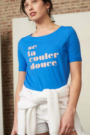 T-shirt "se la couler douce" bleu en coton mélangé de La Redoute
