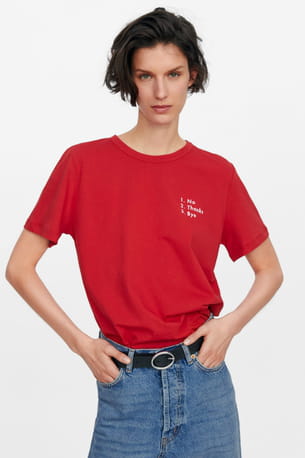 T-shirt impression bimatière rouge avec inscriptions de Zara