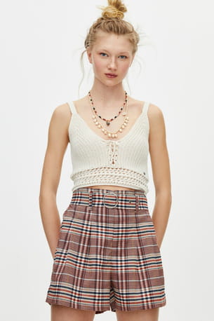 Short à carreaux avec ceinture, taille haute de Pull and Bear
