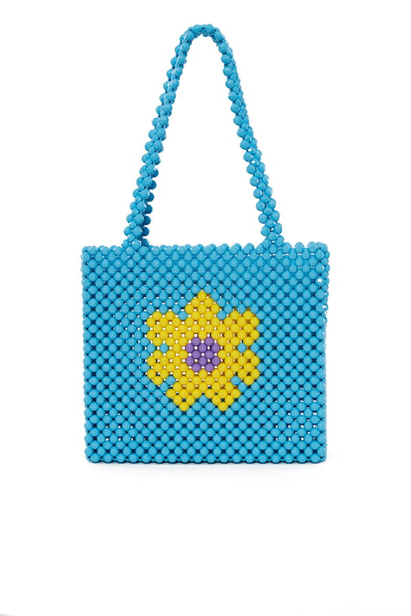 Sac en perles "Margaret Bag" bleu avec fleur jaune de Opening Ceremony