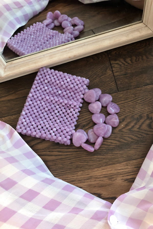 Sac en perles "Porpora" violet avec anse en pierres de Moune Paris