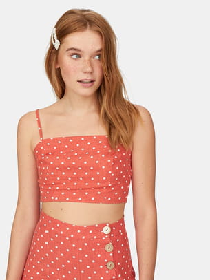 Crop-top corail à pois de Stradivarius