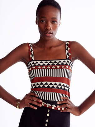 Top à motifs géométriques incrusté de coquillages de Uterqüe