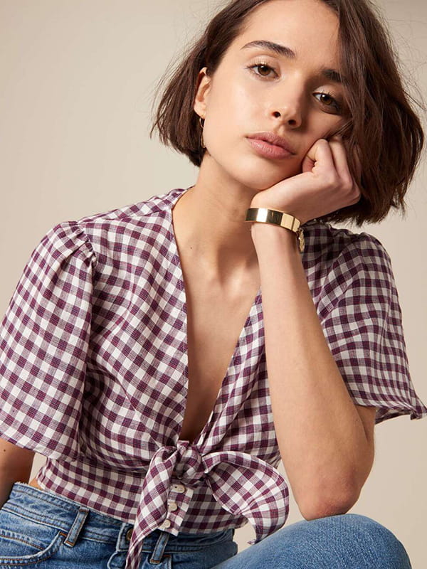 Top à manches courtes imprimé vichy de Sessùn