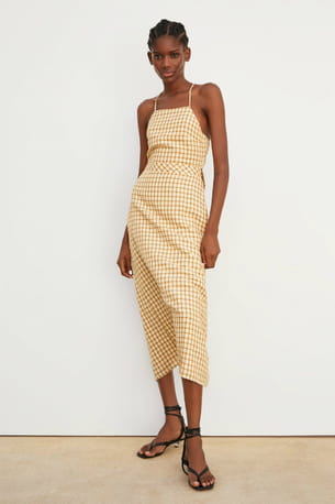 Robe effet brut à carreaux avec bretelles fines croisées dans le dos de Zara