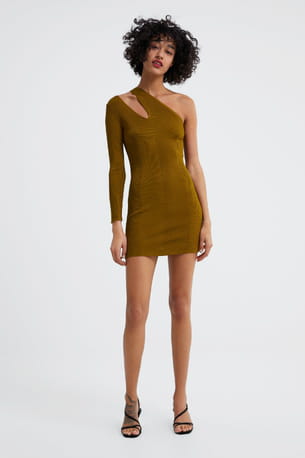 Mini-robe ajourée façon asymétrique avec épaule nue de Zara