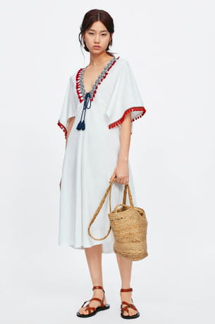 Robe à matières variées avec pompon sur le col et coupe évasée de Zara