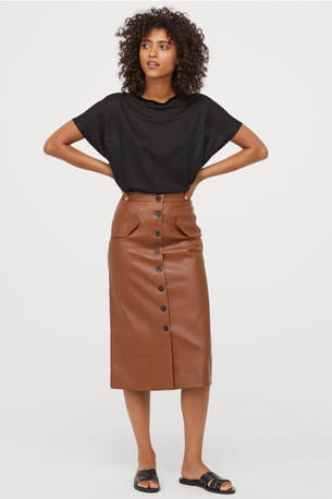 Jupe à boutons forme droite en simili cuir marron de H&M