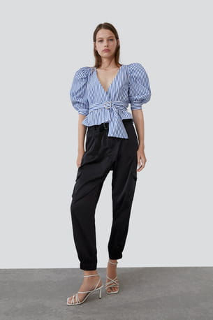 Top à rayures manches bouffantes avec ceinture bijou de Zara