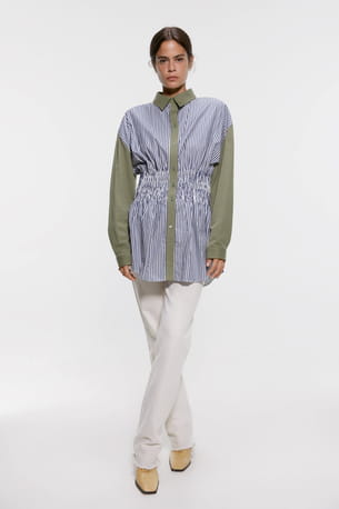 Chemise bimatière resserrée à la taille et rayée de Zara