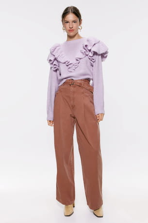 Pull en maille à volants lavande de Zara