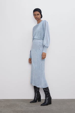 Jupe en maille brillante longueur mi-mollet avec boutons sur le coté de Zara
