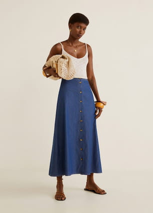 Jupe en denim foncé mi longue de Mango