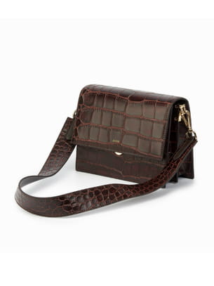Sac porté travers en imitation croco chocolat de Friday by JW Pei