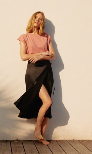 Jupe "shiny black" fendue sur le côté de Noo paris