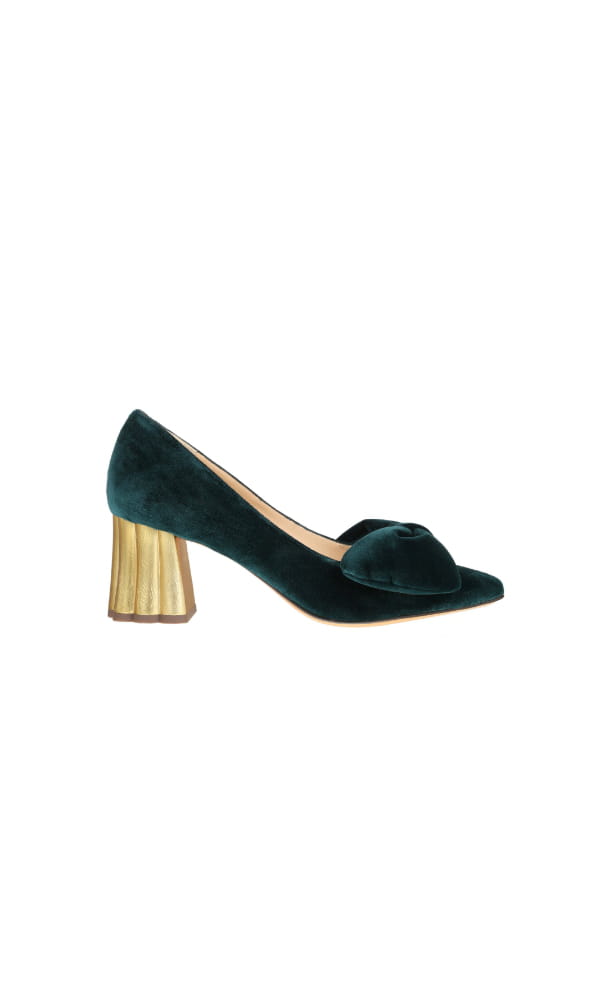 Escarpin "Layla" matière velours avec noeud et talon doré de Chie Mihara