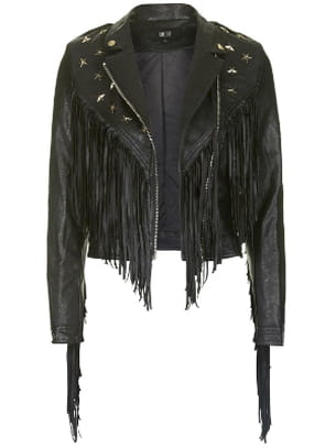 Blouson en similicuir noir biker à franges et clous de TopShop
