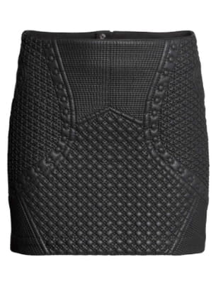 Jupe courte moulante noir en similicuir effet matelassé devant de H&M