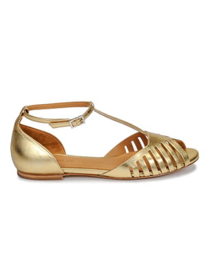 Sandales plates en cuir doré ajouré d'Emma Go sur Spartoo
