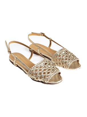 Sandales plates en cuir lamé tressé de Des Petits Hauts
