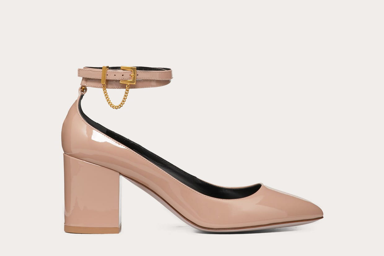 Escarpins vernis nude avec chaîne et bride de Valentino