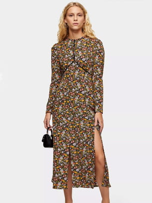 Robe vintage a fleurs et à liserets en velours de Topshop