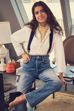 Top manches longues avec col ouvert avec boutons de Leandra Medine chez Mango