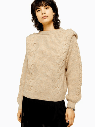 Pull beige en maille torsadée de Topshop