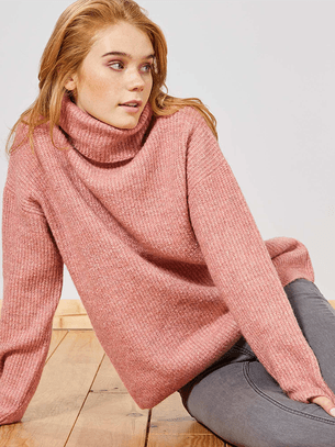 Pull rose à col roulé en maille de Kiabi