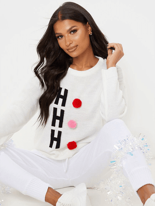 Pull de Noël blanc à pompons de PrettyLittleThing