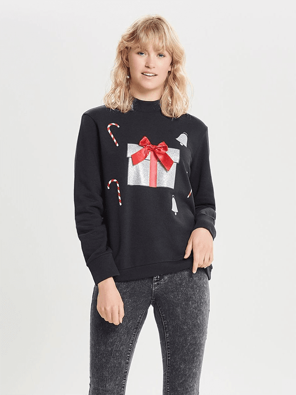 Pull de Noël noir à ruban et cadeau de Jacqueline de Yong