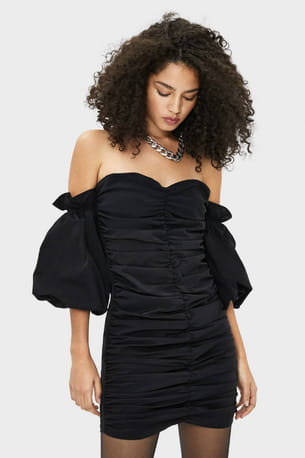 Mini robe froncée avec épaules dénudées de Bershka