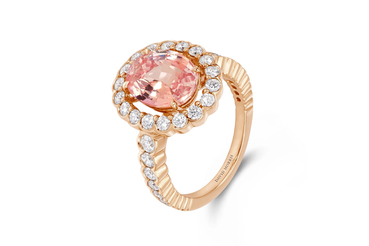 Bague or rose diamants blancs et saphir padparadscha 3,63 carats en édition limitée de David Morris