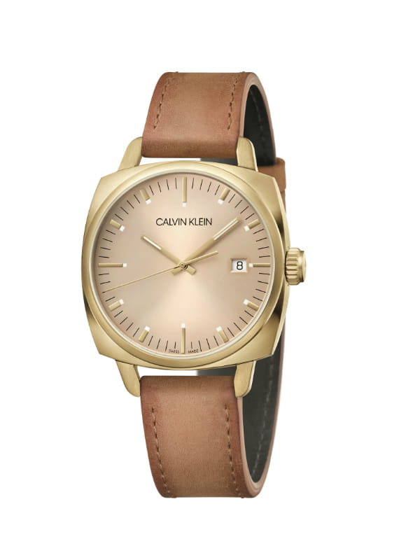 Montre en acier doré et bracelet cuir de Calvin Klein