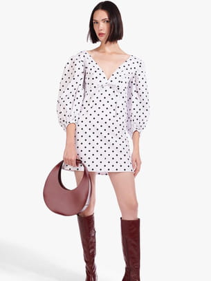 Robe courte à pois noirs et à manches bouffantes de Staud