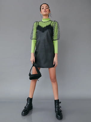 Robe noire façon cuir à manches en tulle de Tally Weijl