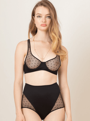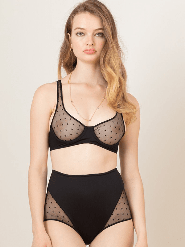 Soutien-gorge et culotte taille haute noirs à plumetis de Only Hearts