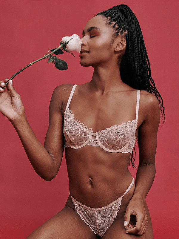 Soutien-gorge et culotte en dentelle rose pâle de Kat The Label