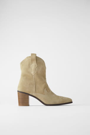 Bottines cow boy en croûte de cuir de Zara