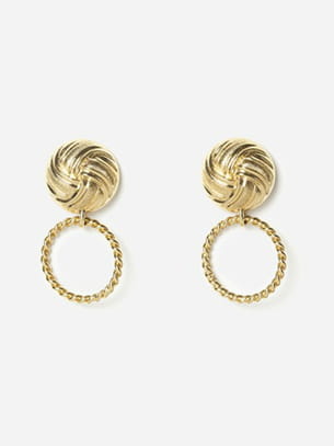 Boucles d'oreilles en laiton doré composées d'un cabochon texturé et d'un anneau torsadé de Chic Alors