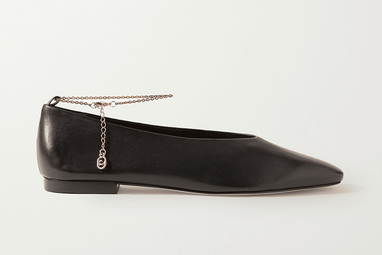 Ballerines en cuir noir avec chaîne à la cheville de Porte & Paire