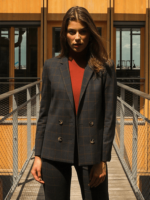 Veste de tailleur bleu d'Ecosse à carreaux de 17h10