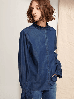 Chemise à fronces en coton bleu de Le Mont Saint-Michel