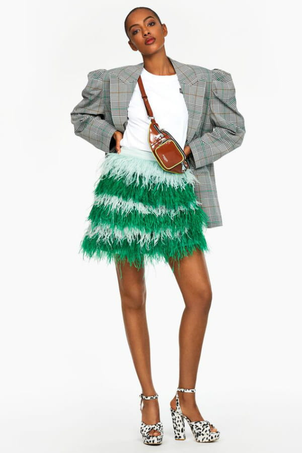 Jupe "vibe" effets plumes vertes et blanches de Essentiel Antwerp