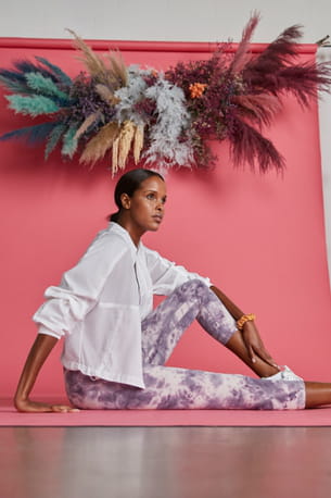 Tenue de sport avec pantalon legging imprimé et veste technique courte de Lululemon