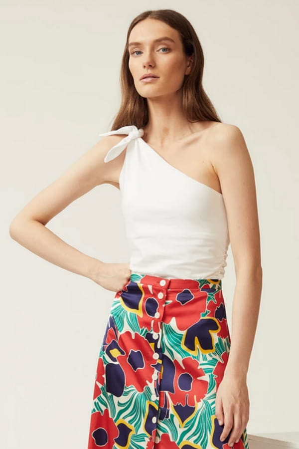 Top asymétrique "Gloria" avec noeud sur l'épaule de Mirae
