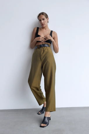 Pantalon slouchy kaki avec ceinture de Zara